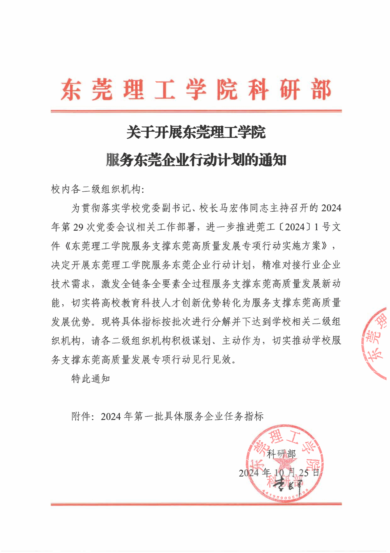关于开展yl6809永利检测中心服务东莞企业行动计划的通知 科研通〔2024〕122号