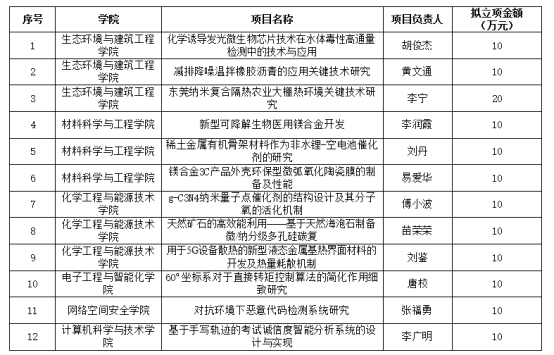 近日,东莞市科技局发布了《2020年东莞市社会科技发展(重点)项目拟立项及资助经费安排公示》。我校共申报15项,“东莞纳米复合隔热农业大棚热环境关键技术研究”等12项项目入选拟资助清单,资助经费130万元。其中生态环境与建筑工程学院、材料科学与工程学院、化学工程与能源技术学院各3项,电子工程与智能化学院、网络空间安全学院、计算机科学与技术学院各1项。