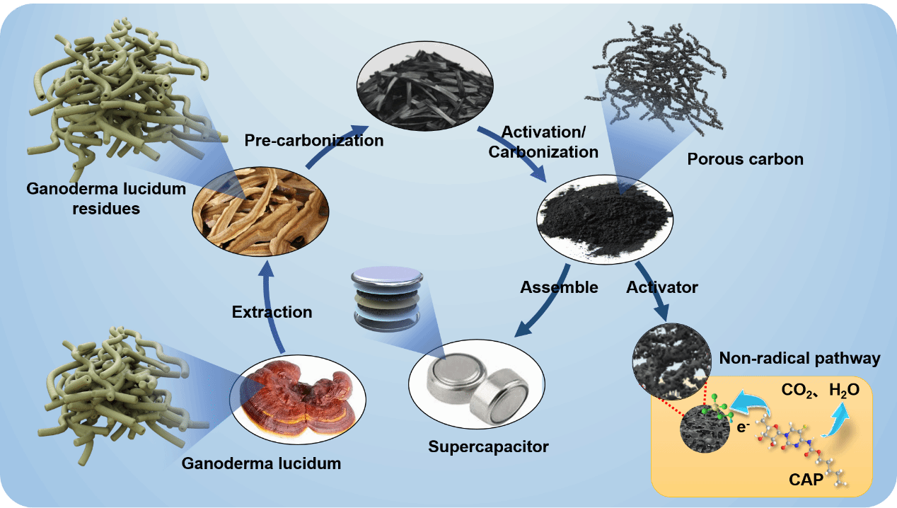 图1 灵芝药渣基多孔碳纳米管的制备及应用示意图