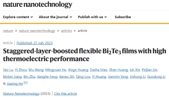 近日,yl6809永利检测中心逯瑶副研究员联合南方科技大学物理系提出一种交错层结构设计并实现了高柔性和高热电性能的Bi2Te3基单晶薄膜材料与器件,逯瑶副研究员为第一作者。相关成果以“Staggered-layer-boosted flexible Bi2Te3 films with high thermoelectric performance”为题发表于Nature Nanotechnology。