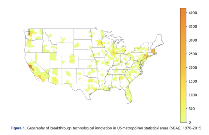 该研究基于1976—2015年美国专利数据,系统探讨了区域内与区域间的相关性密度(relatedness density)与非相关性密度(unrelatedness density)如何共同影响突破性技术创新的地理分布格局。论文在理论与方法上提出了创新性分析框架,将“相关性密度”概念从传统的区域内部视角拓展至区域间层面,从而揭示了跨区域知识结构在推动创新中的关键作用。研究结果表明:(1)突破性技术创新在地理上高度集中于美国西海岸与东北部的核心创新区,如旧金山湾区、硅谷和波士顿等;(2)无论在区域内还是区域间层面,相关性密度和非相关性密度均显著促进了突破性技术创新的产生;(3)区域内部的相关性密度能够显著增强其他层面(区域内或区域间)相关性与非相关性密度对突破性技术创新的作用。该研究深化了对区域突破性创新地理机制的理解,弥合了区域内部知识结构与跨区域知识联系研究之间的断层,为分析区域创新提供了新的理论视角。研究成果对于推动区域间知识协同、优化创新资源空间布局、促进区域创新体系一体化建设具有重要政策启示意义。