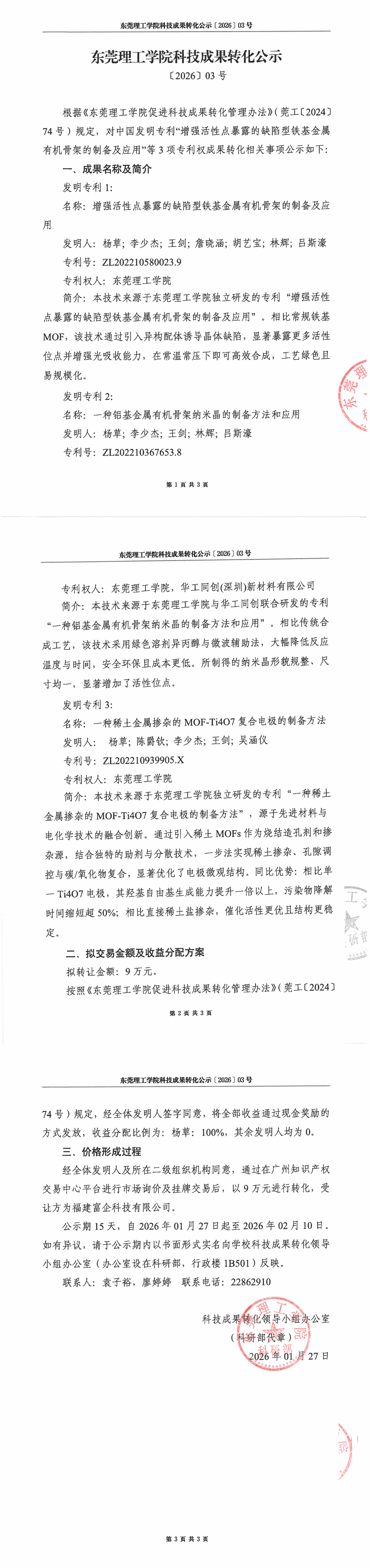 yl6809永利检测中心科技成果转化公示〔2026〕03号