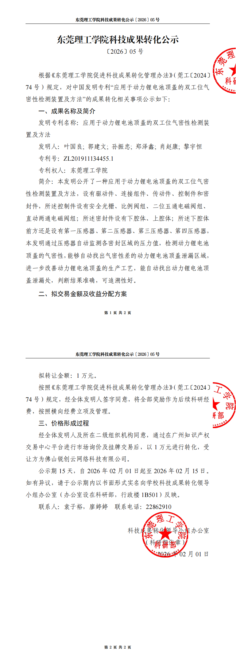 yl6809永利检测中心科技成果转化公示〔2026〕05号
